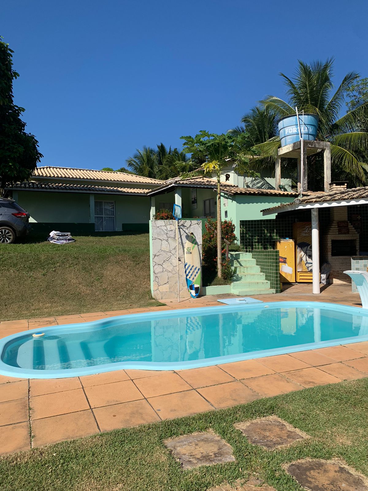 Vende-se um belo sítio em Monte Gordo, Camaçari-BA, próximo a praia de Guarajuba. Com 16.000 m2, casa sede com 4/4 , sendo 1 suíte, sala, cozinha, banheiro social, forrada, ar condicionado, varanda, quiosque completo, área de lazer, salão de jogos, piscina, quadra gramada pra vôlei ou futebol. Casa de caseiro, depósito, galpão de galinheiro, capineira, árvores frutíferas. Apartamento anexo de 1/4 (suite) e sala.